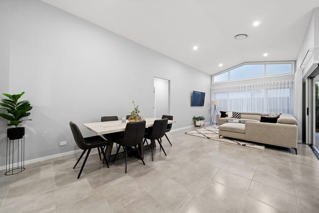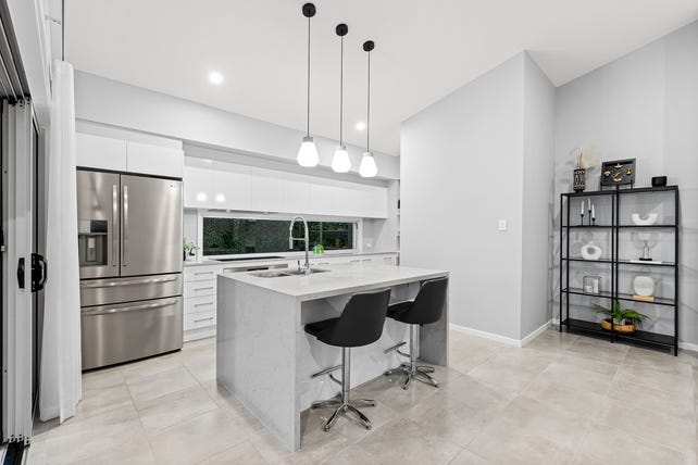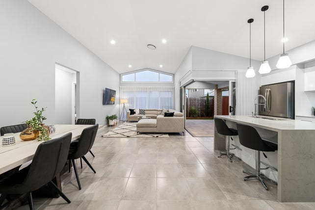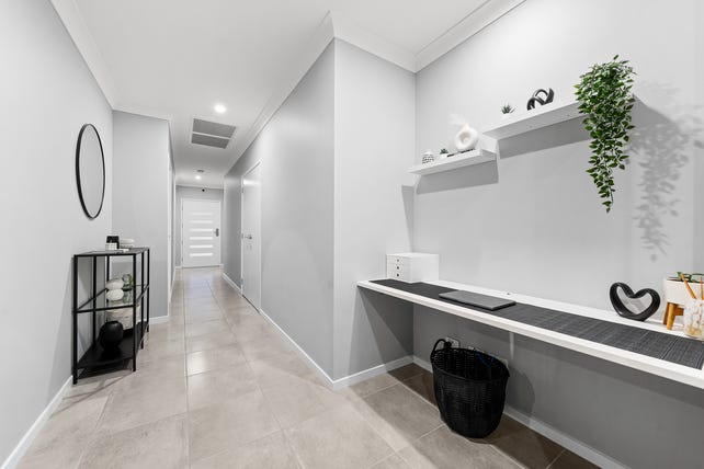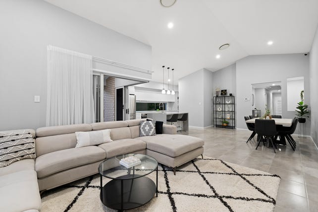 4 bedrooms, 2 bathrooms, huge open-plan living, study nook, high raked ceilings, designer kitchen, walk-in pantry, working stone benchtop in pantry ducted air-conditioning, ceiling fans, low-maintenance yard.