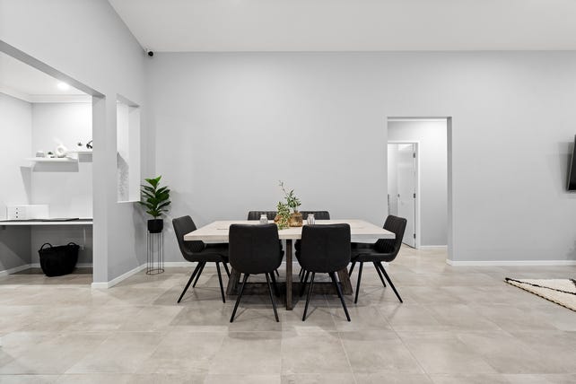 - Open-plan dining and living area with stacker doors to extended patio