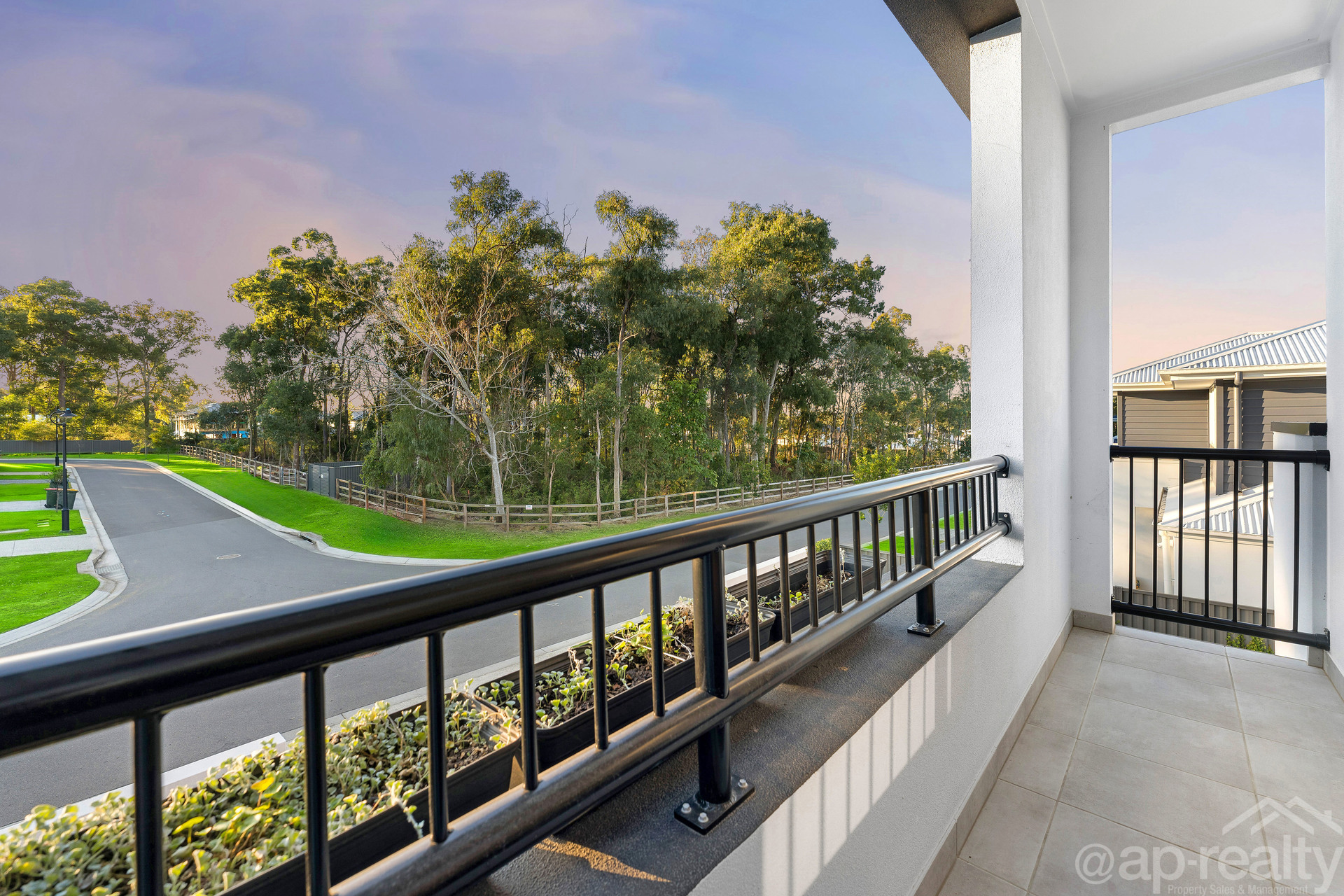 oven, dishwasher • Open-plan living and dining areas with cornerless stacker doors • Covered outdoor entertaining area with ceiling fan • Balcony overlooking scenic bushland • Convenient proximity to shops, schools, parks, and transport
