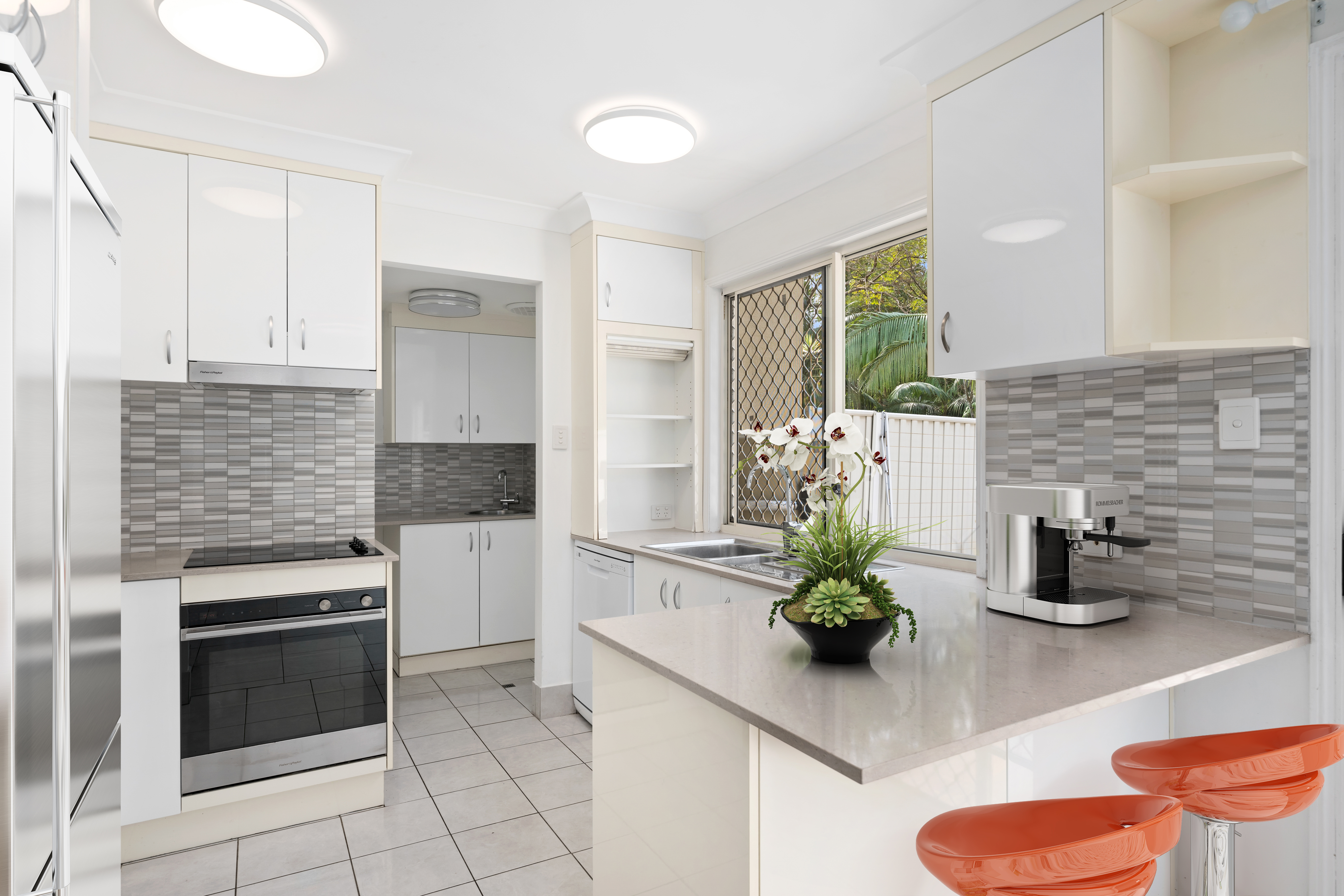 Modern Kitchen, The well-appointed kitchen features stone bench tops and stainless steel appliances has ample storage and a functional layout, making meal preparation a delight.
