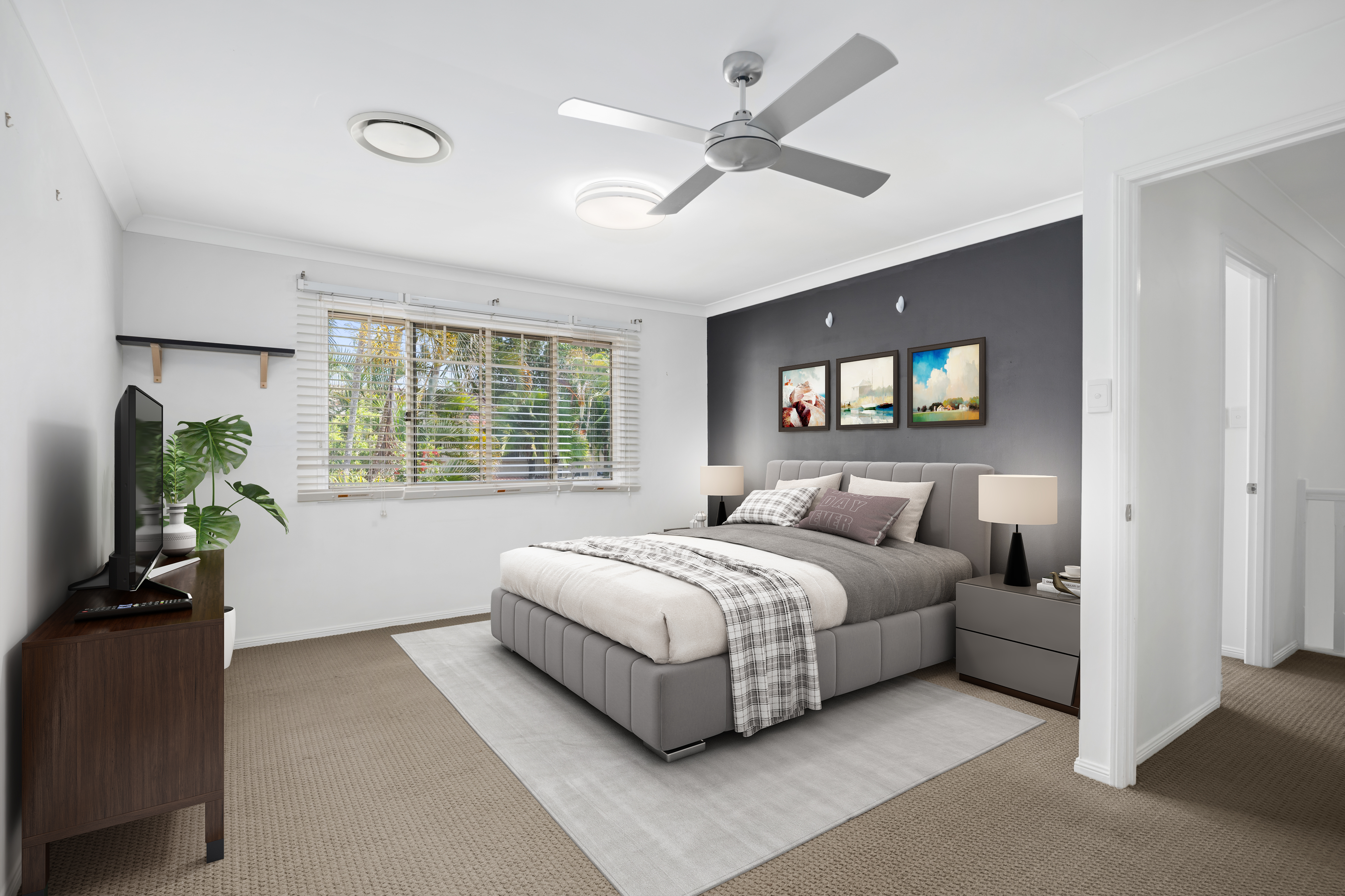 The property has ducted air-conditioning to the upstairs bedrooms and split system air-conditioning to the living area with ceiling fans to all bedrooms.
